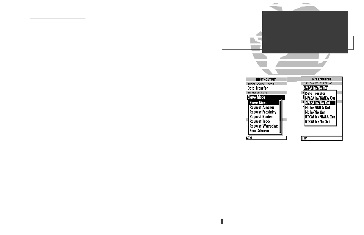 NMEA In/No Out allows input from a NMEA compatible external device, such as a