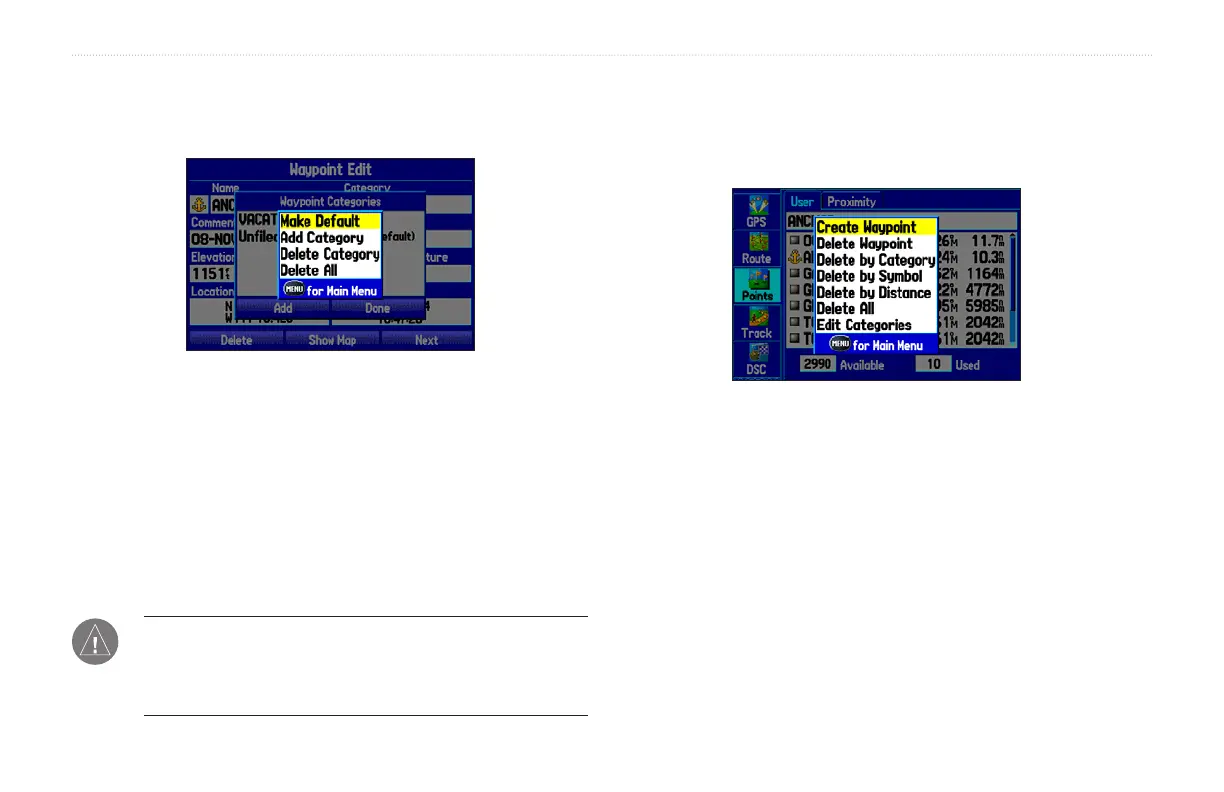 from the Waypoint pages. To delete a waypoint from the Waypoint