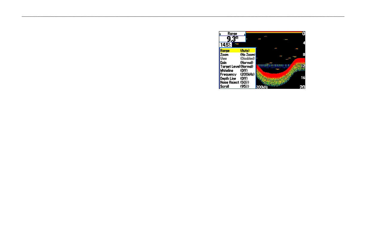 are available: Range, Zoom, View, Gain, Target Level, Whiteline,