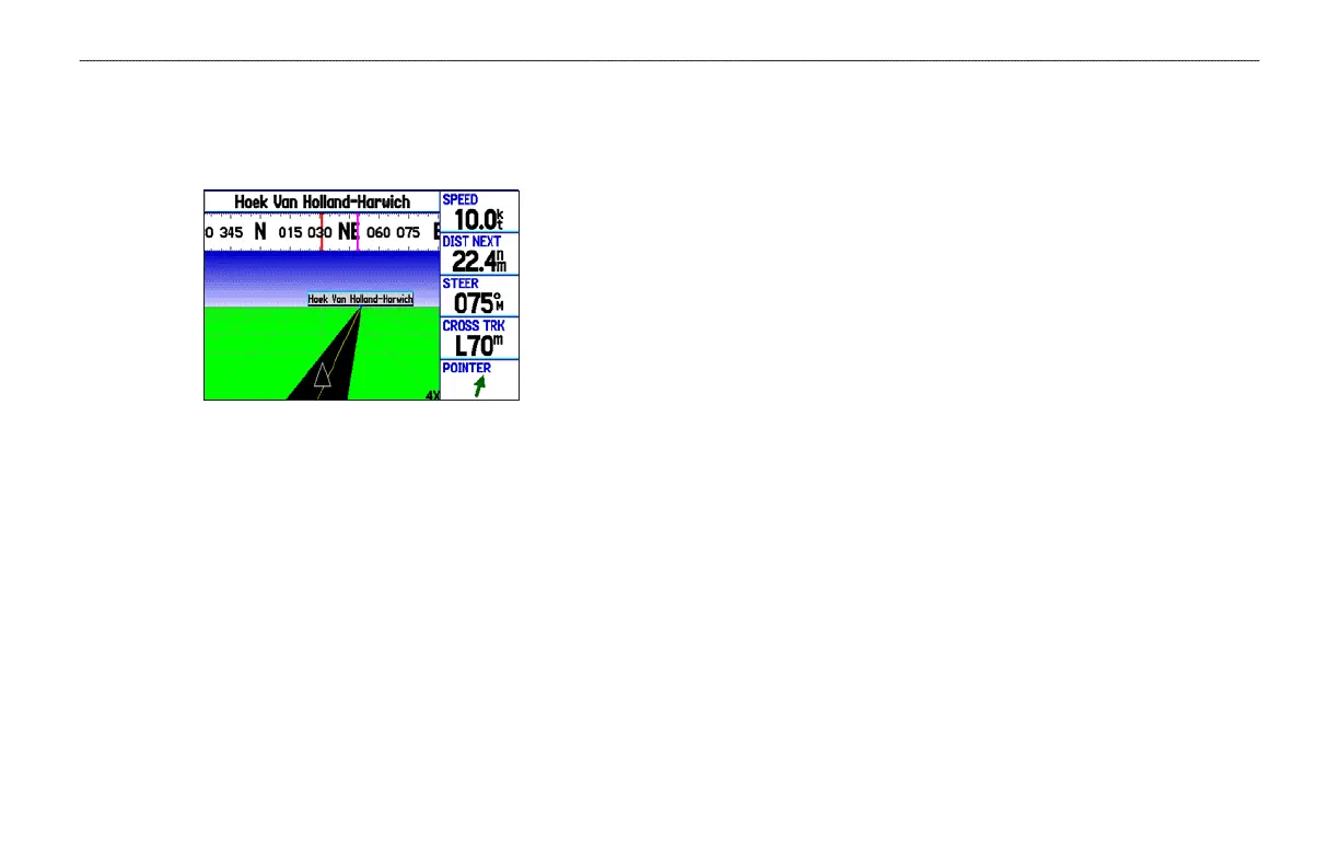 the screen provides visual guidance to the waypoint on a graphic