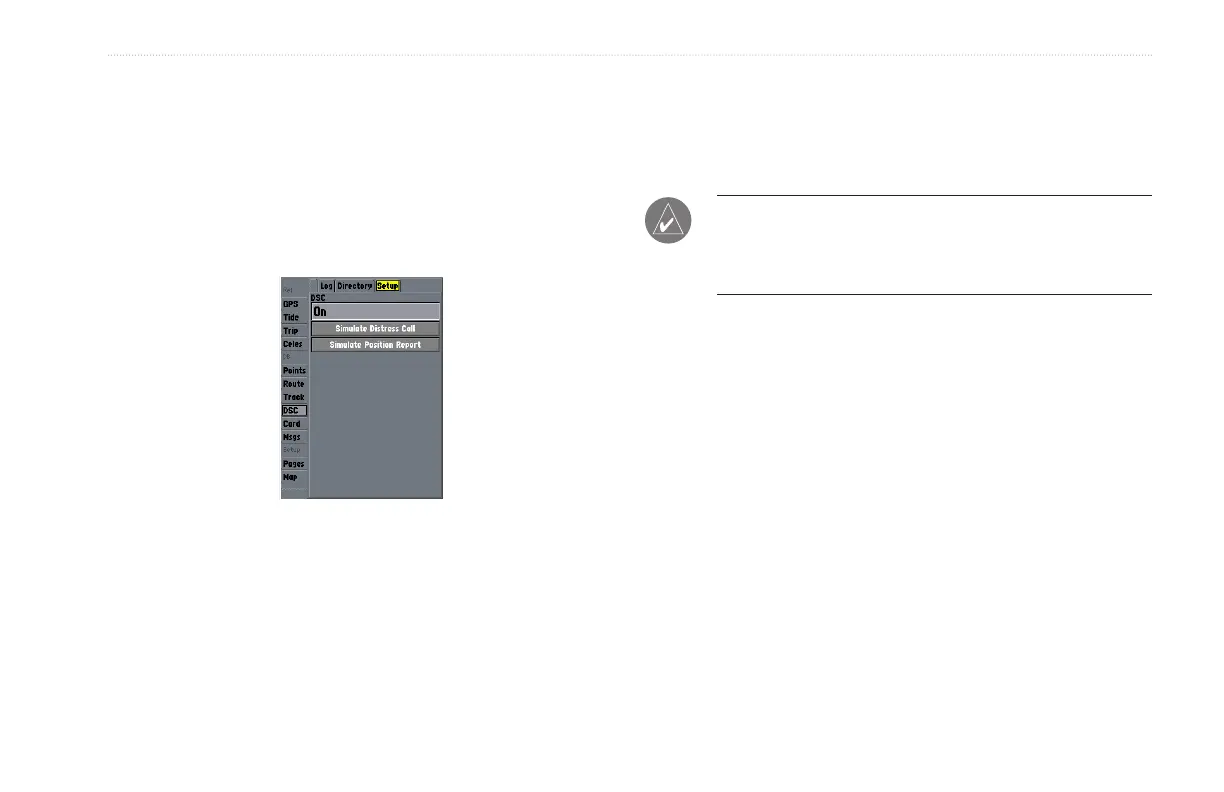 The DSC Setup tab turns DSC chartplotter information screen On
