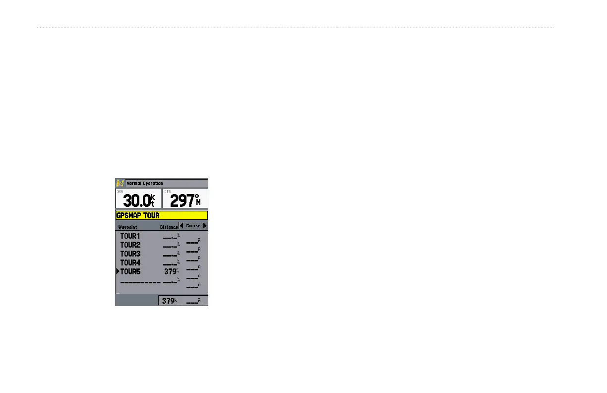 the point name, distance and choice of Course, ETA, Fuel, Leg