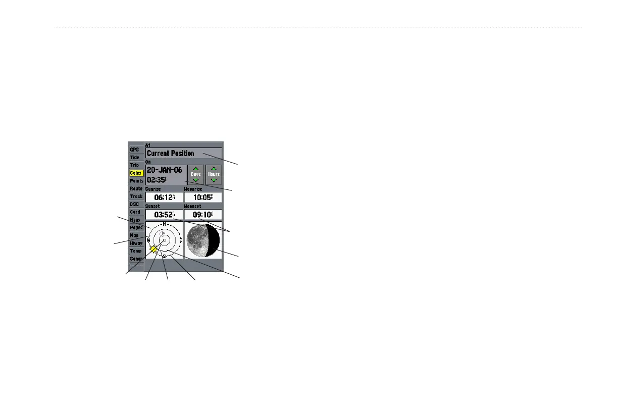 The Celestial tab shows celestial data for sun and moon rise/set,