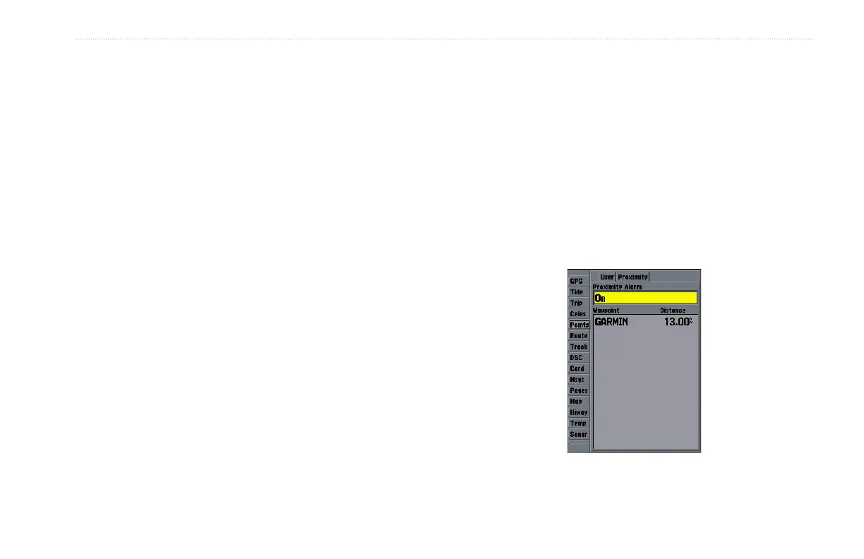 The Proximity list allows you to define an alarm circle around a