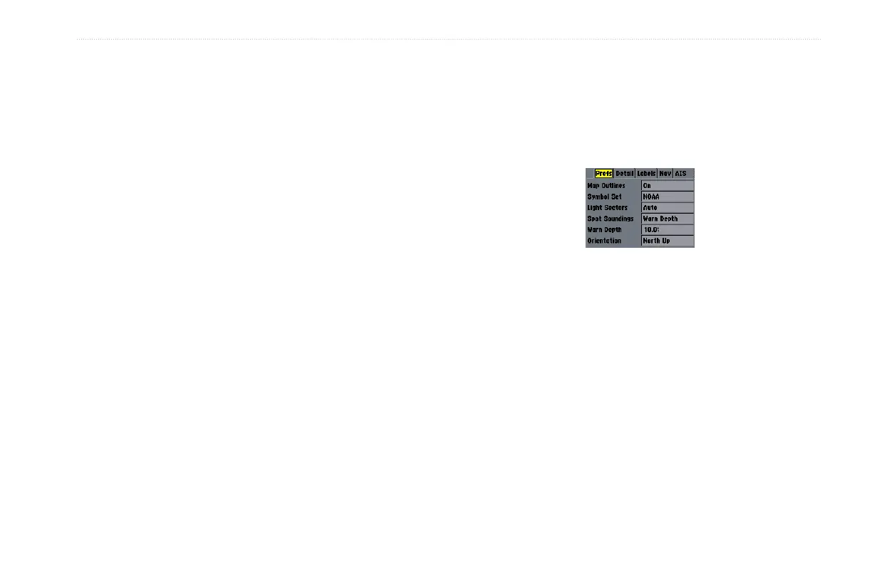 • Spot Soundings—On,Warn Depth, Off: turns on the depth