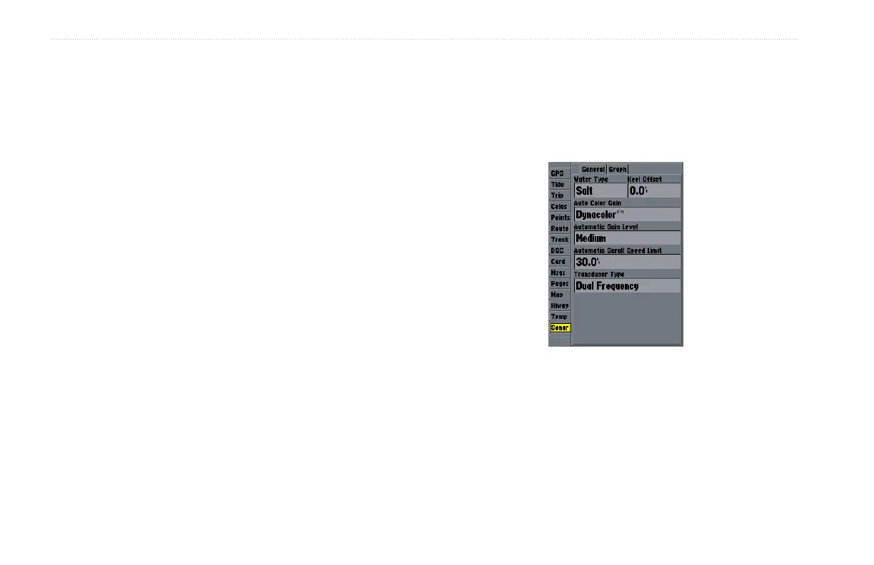 The Sonar tab contains setup options for the Sonar Page. The Sonar