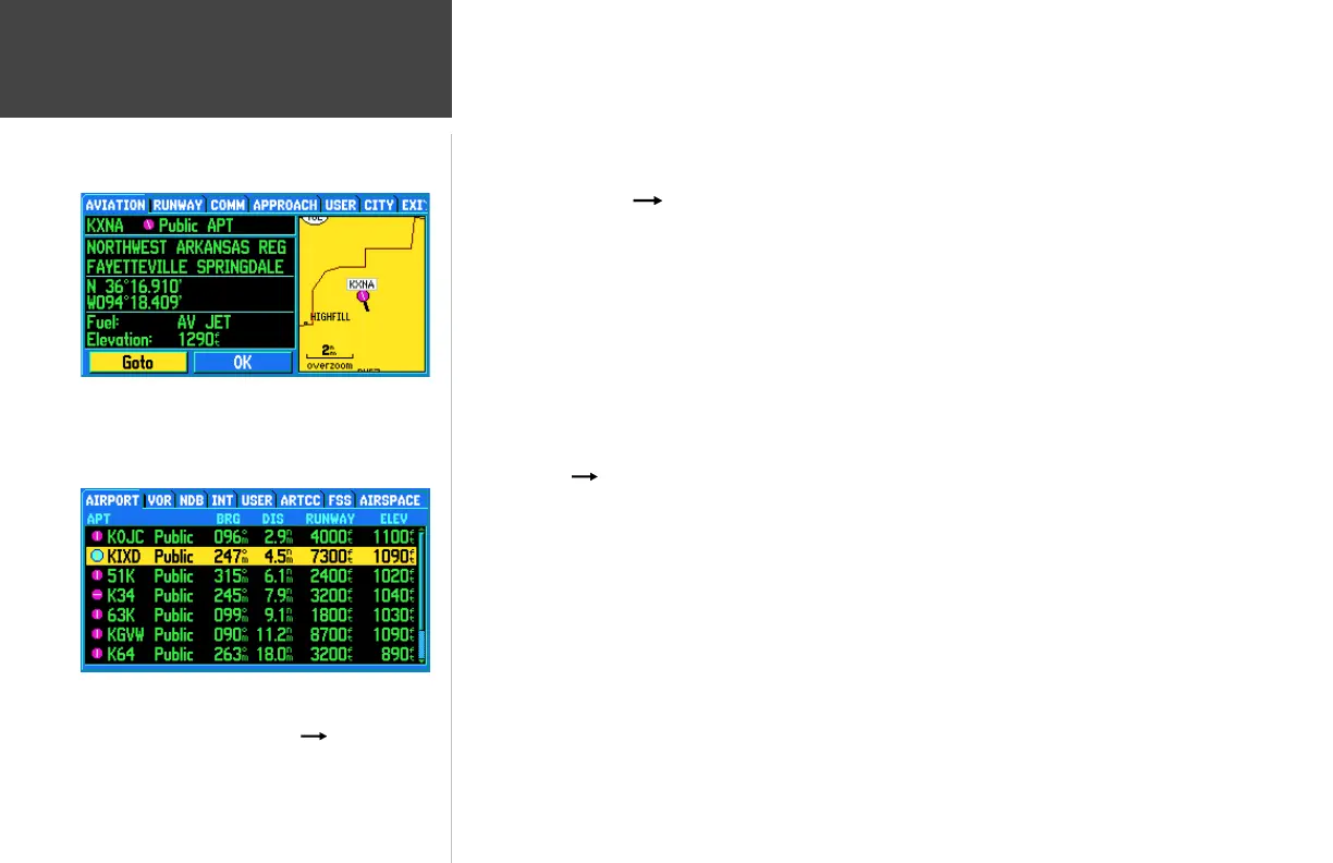 quickly and easily navigate to the displayed airport, navaid or user-created waypoint. Selecting a