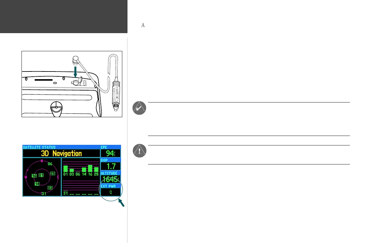 Satellite Status Page shows when external power is supplied to the unit (see bottom left).