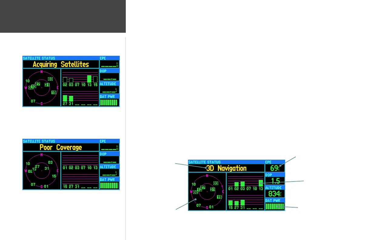 The Satellite Status Page is the first main page you’ll view while your GPSMAP 295 is acquiring