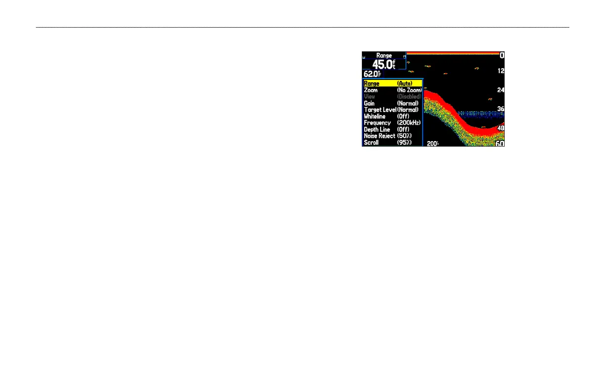 Scroll—adjusts the rate that the sonar screen scrolls from right to