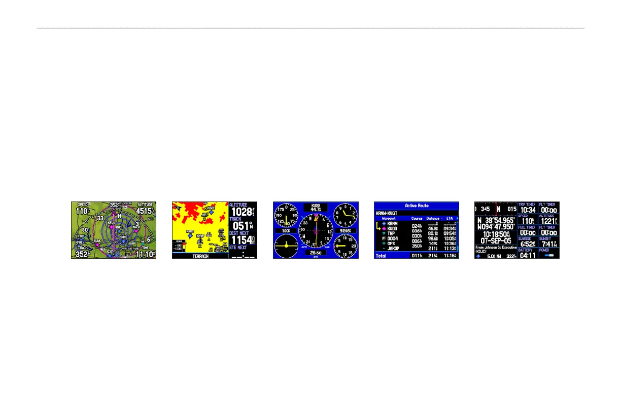 each page in Aviation Mode appears below. Each of these pages has a specific use and each page is discussed later in this manual. Aviation