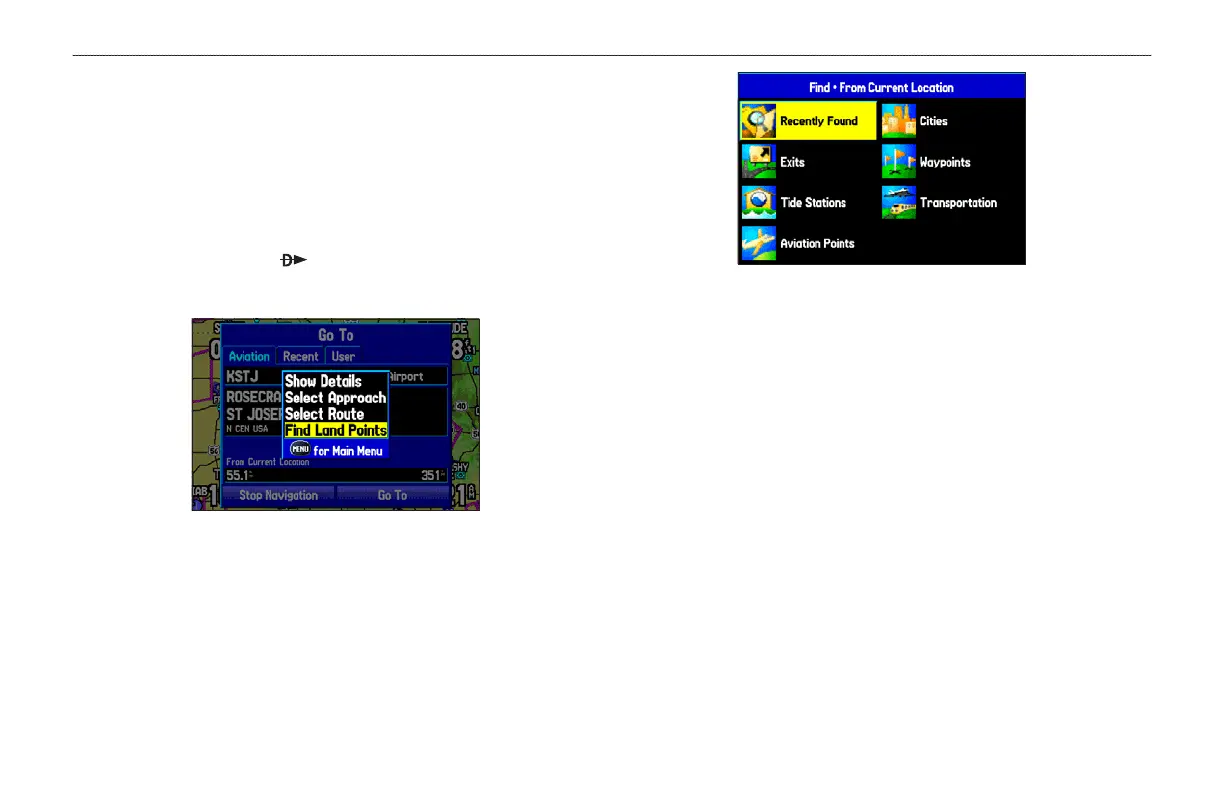 BASIC OPERATION IN AVIATION MODE > FINDING POINTS ON LAND