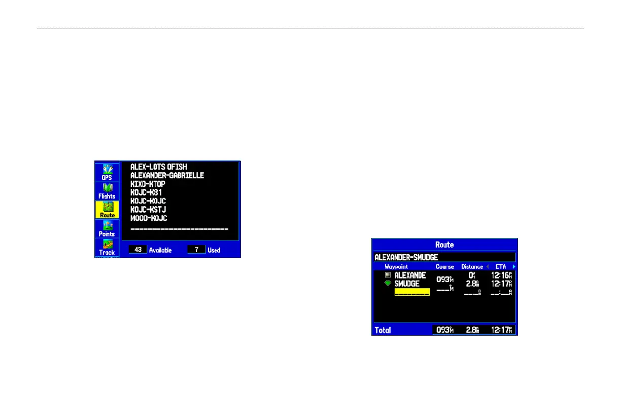 blank route slot and press ENTER. The Route Review Page