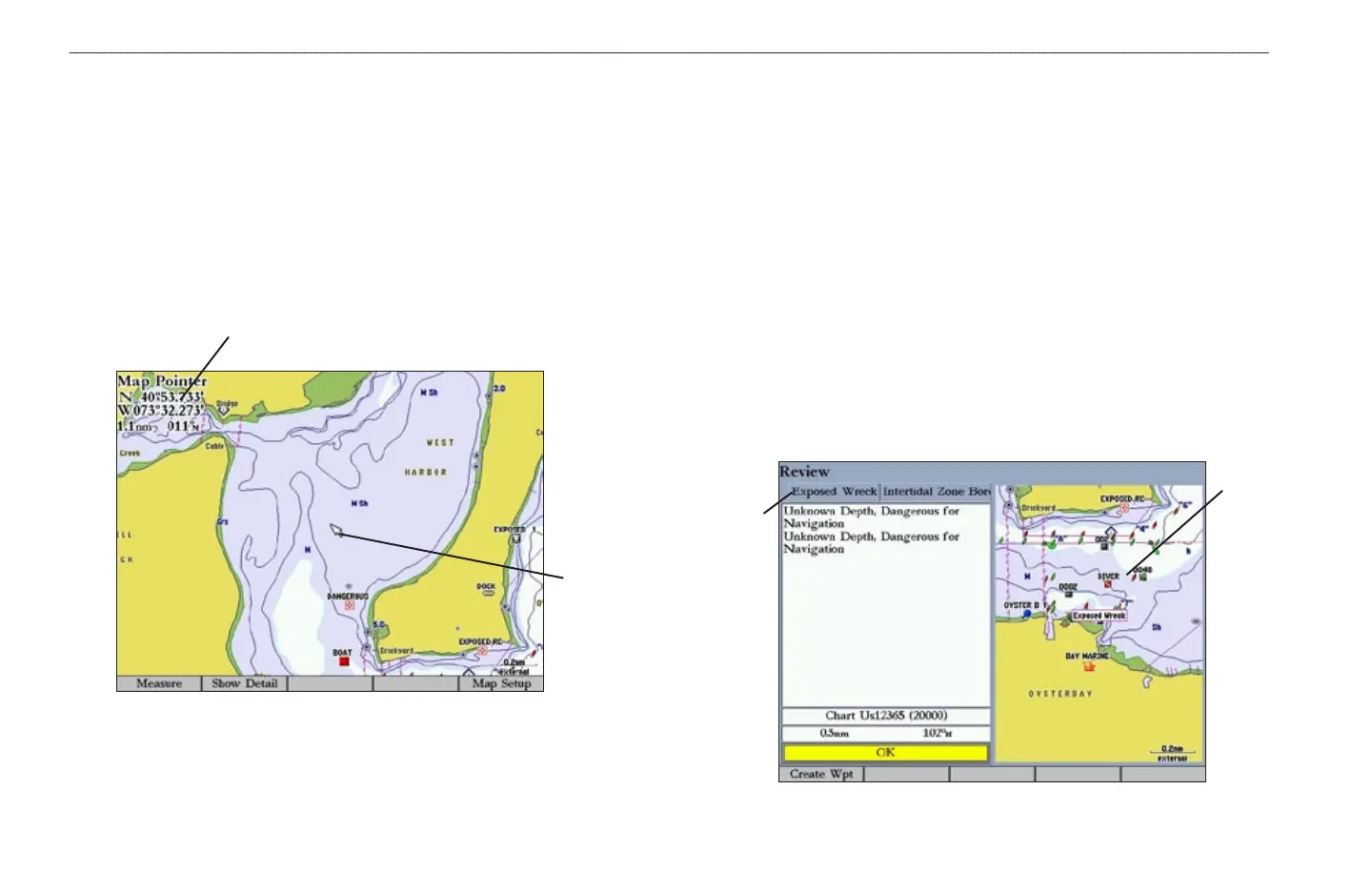 boat moves. The map pointer can also be used to snap to on-screen waypoints and
