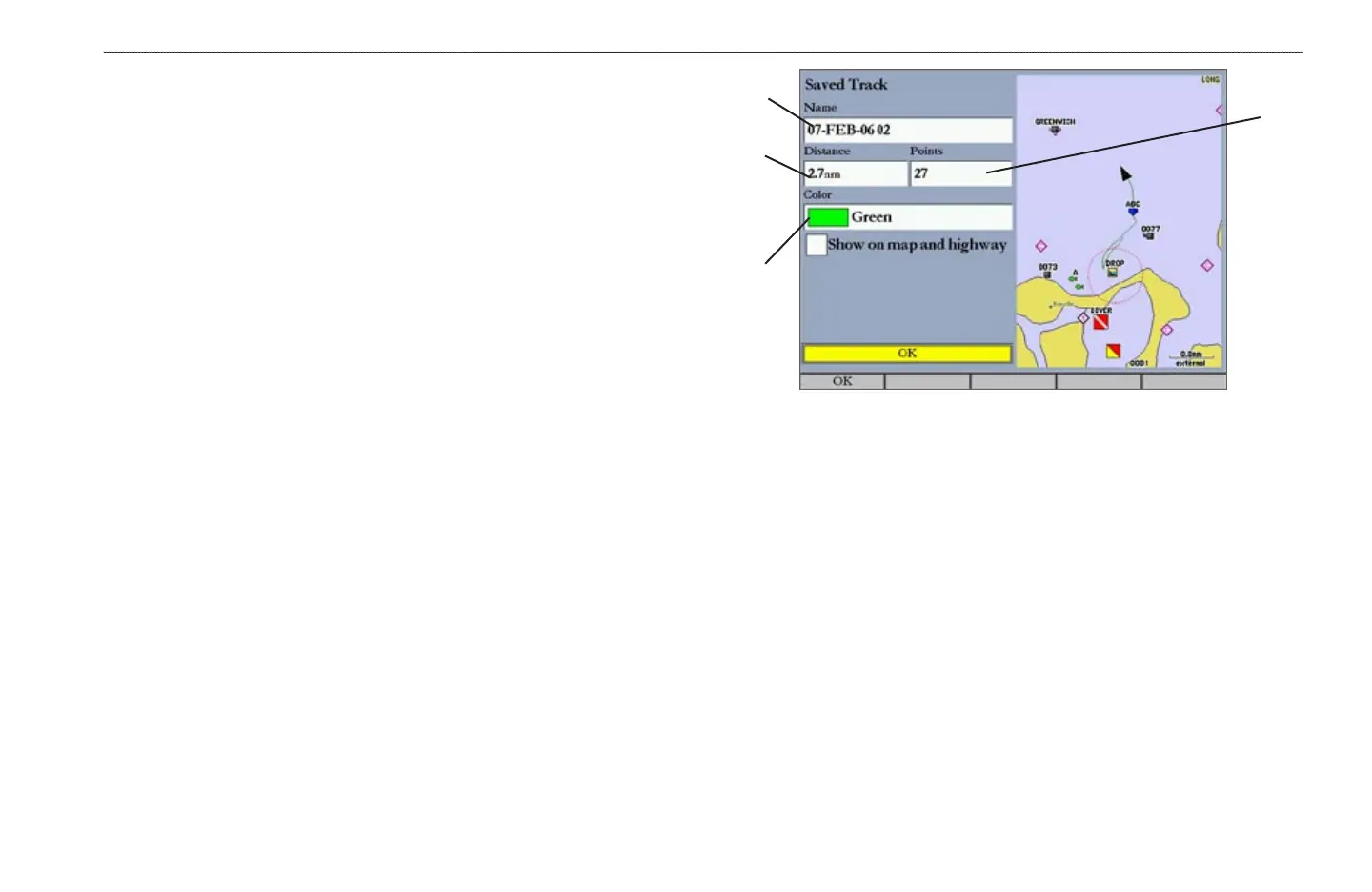 8. Press the OK soft key to save the track log.