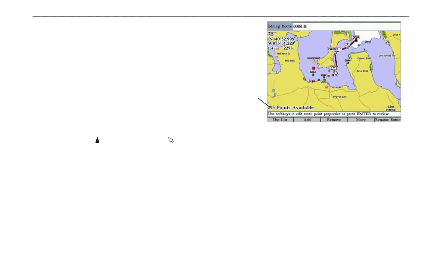 8. Press the OK soft key to add the point to the route. As you add each new
