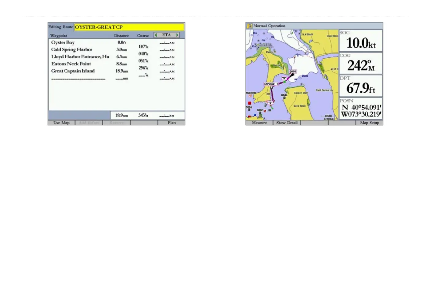 9. Repeat steps 5–8 until all route points are entered. Press QUIT to return