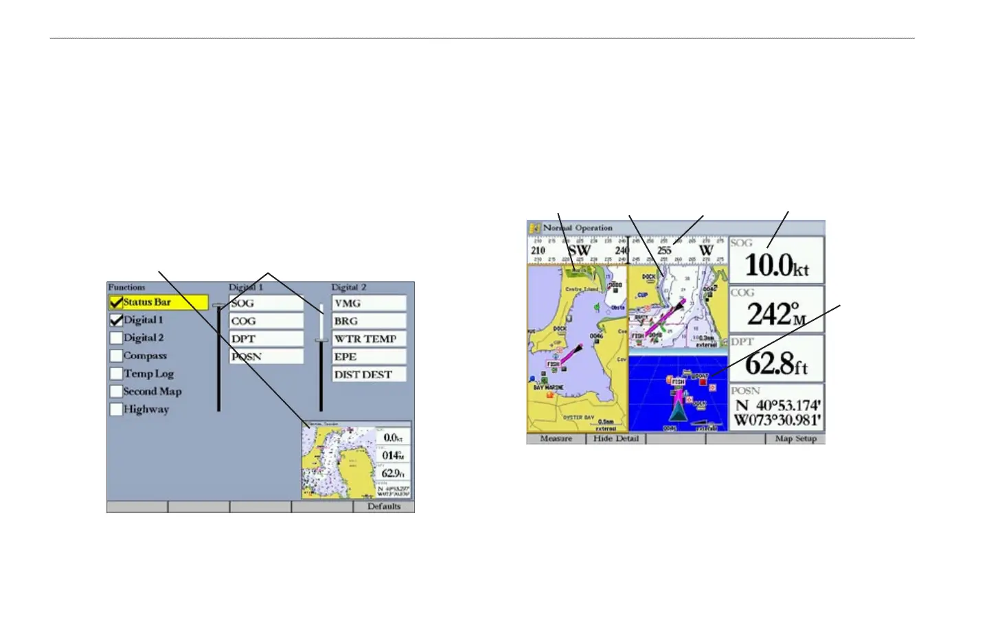 inputting Garmin or NMEA sonar data), or a second map (Map Page only).