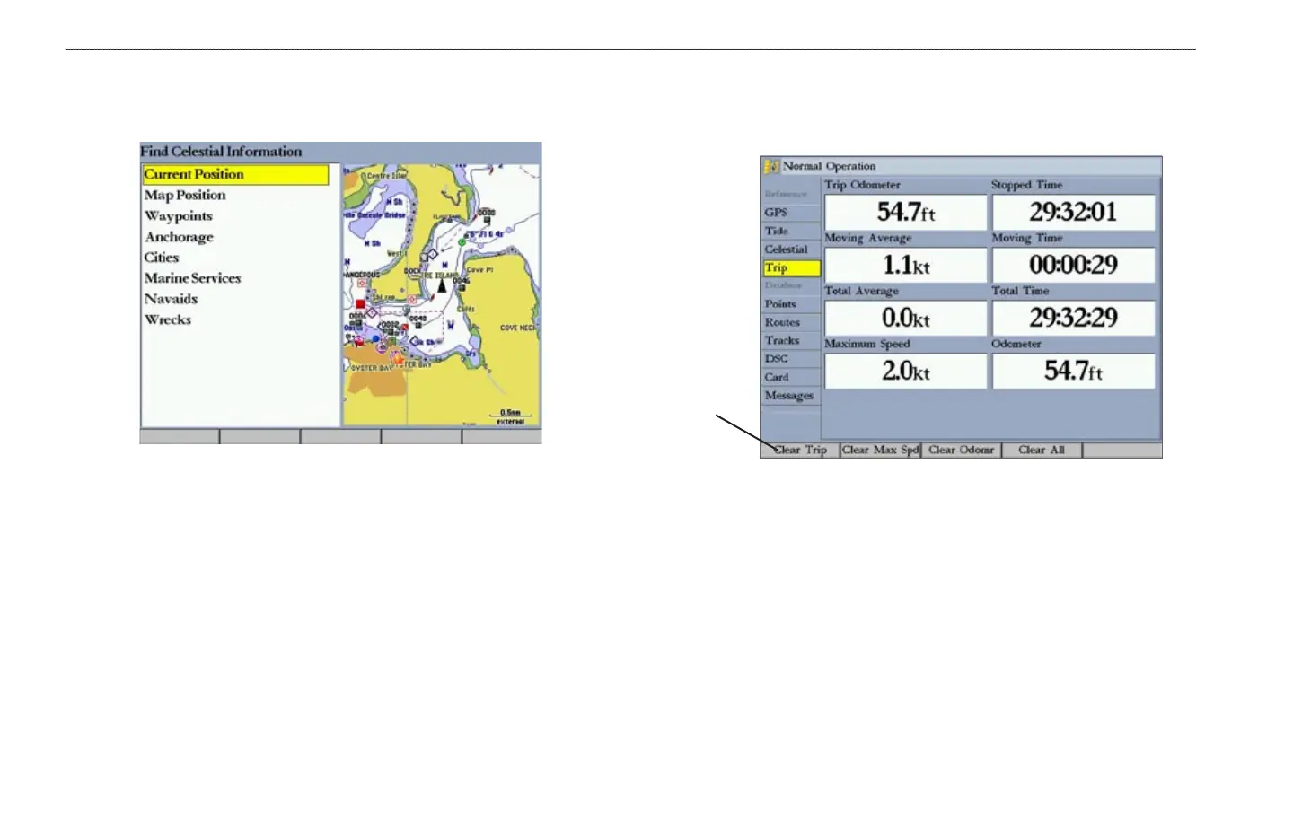 • Clear Trip—clears all trip data.