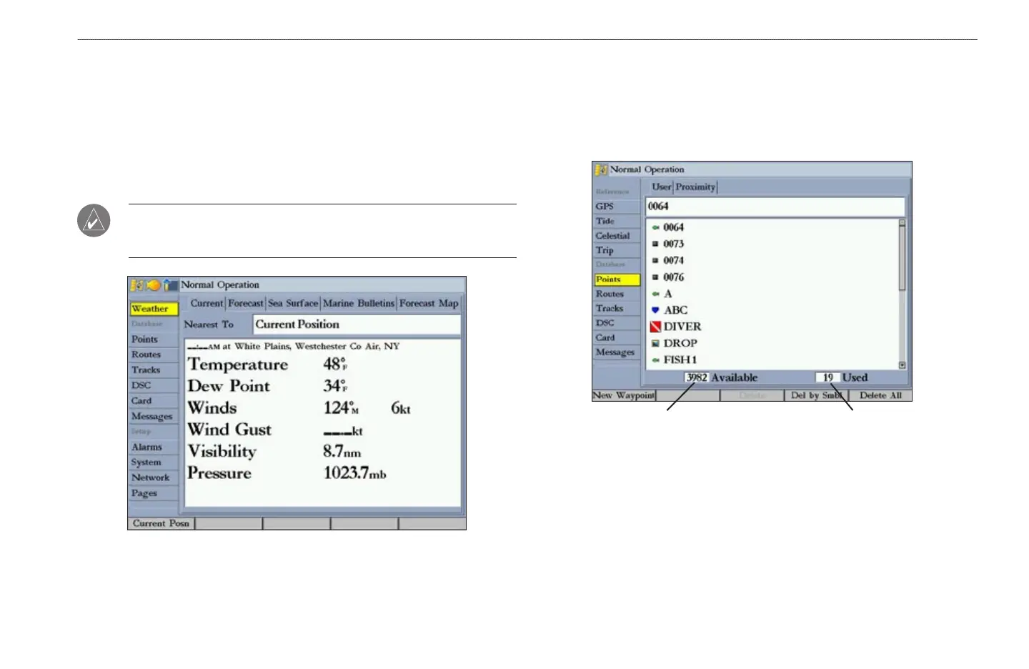 individual waypoints, or delete all user waypoints. The total number of stored