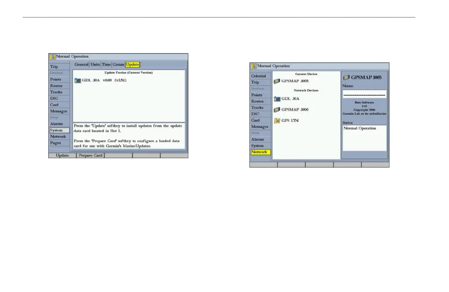 the Garmin Marine Network, and the status of each. You can assign a name or