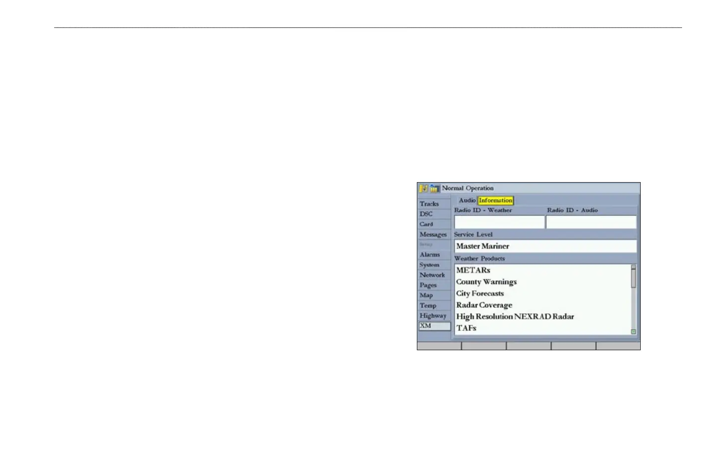 Use the Information sub tab to view the radio identification number for weather