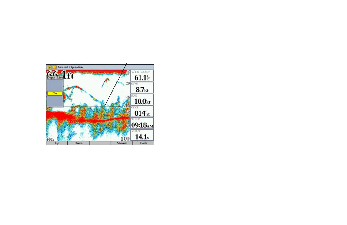 position of the line on the Sonar Page. To turn the Depth Line off, press the