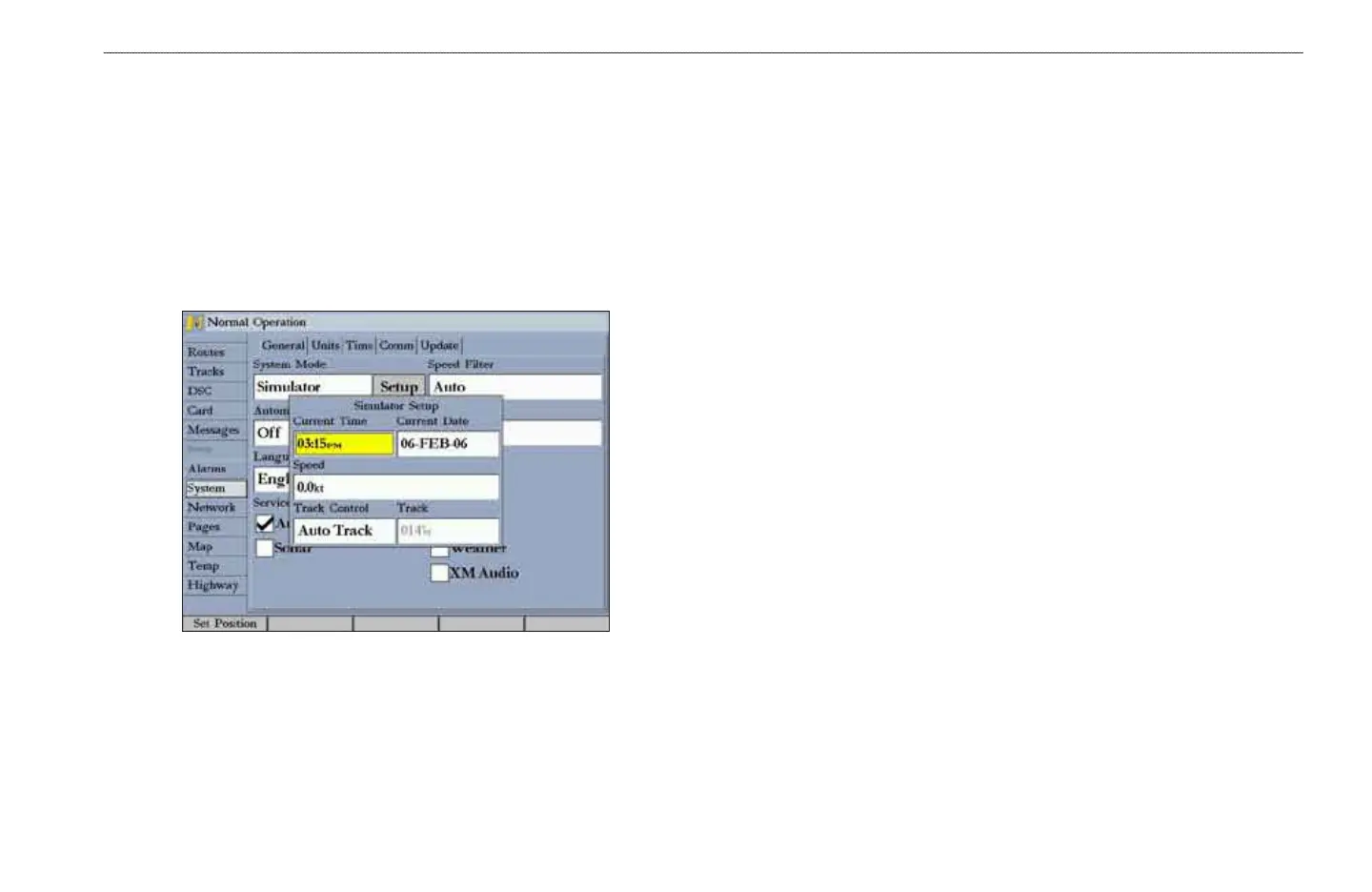 Use the Set Position soft key to set your location while in Simulator Mode.
