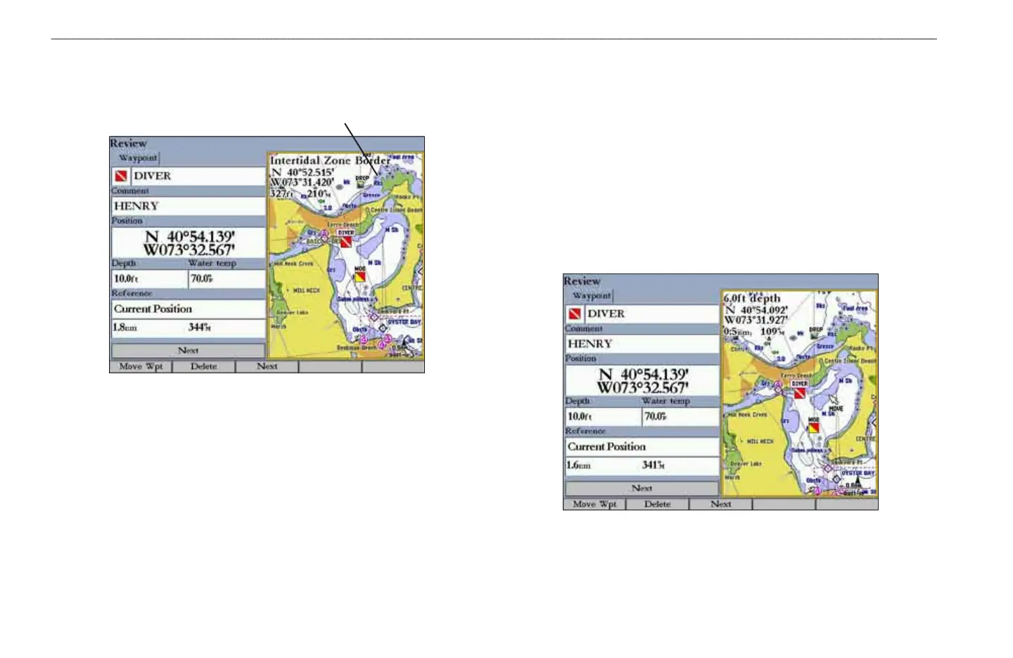 1. Press the Move Wpt soft key. The map window on the right side of the