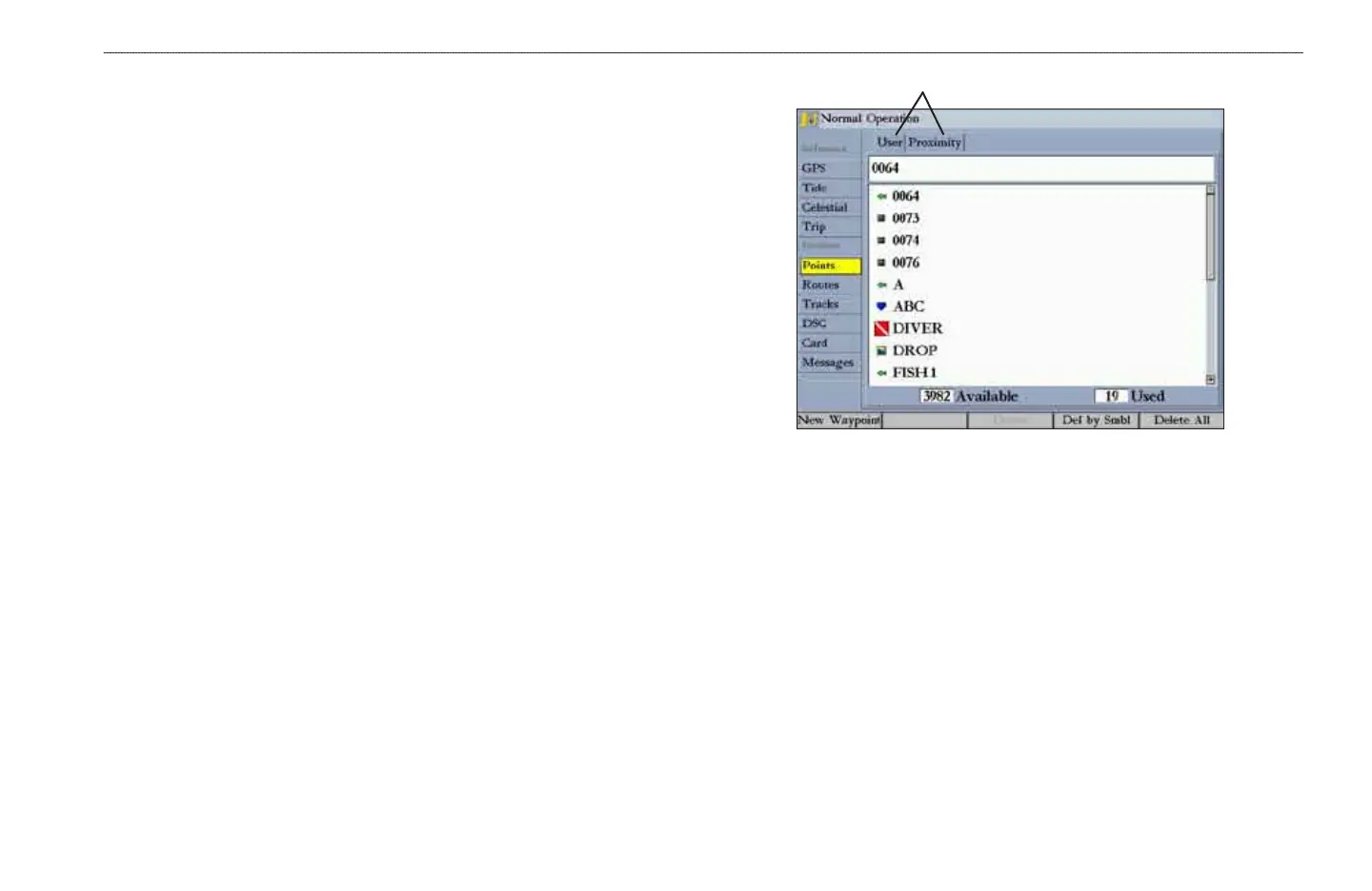 Proximity sub tab also provides a continuously updated proximity waypoint alarm