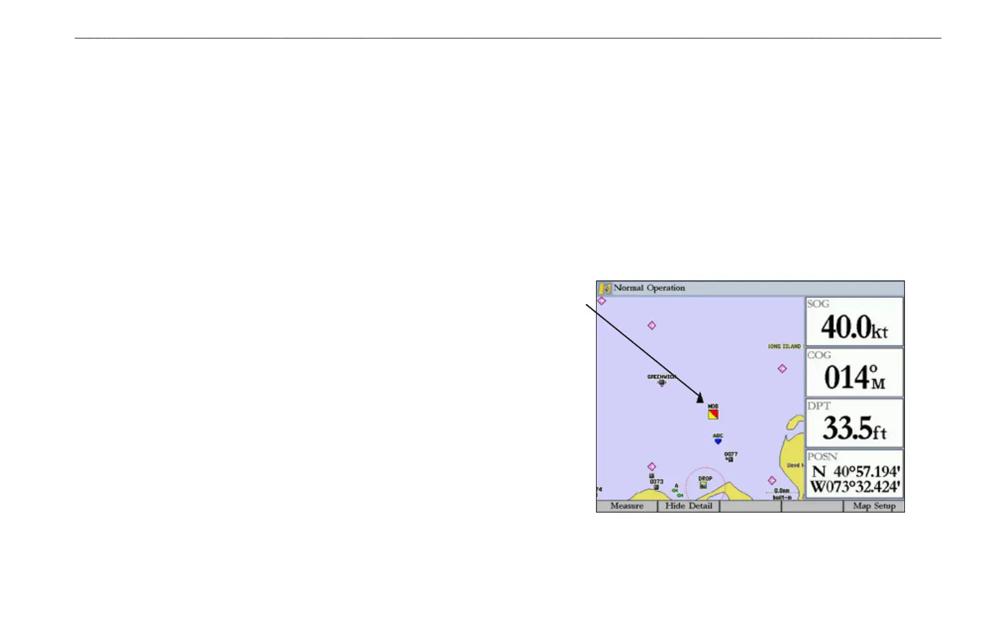 navigation pages to guide you back to the MOB point. The MOB waypoint is