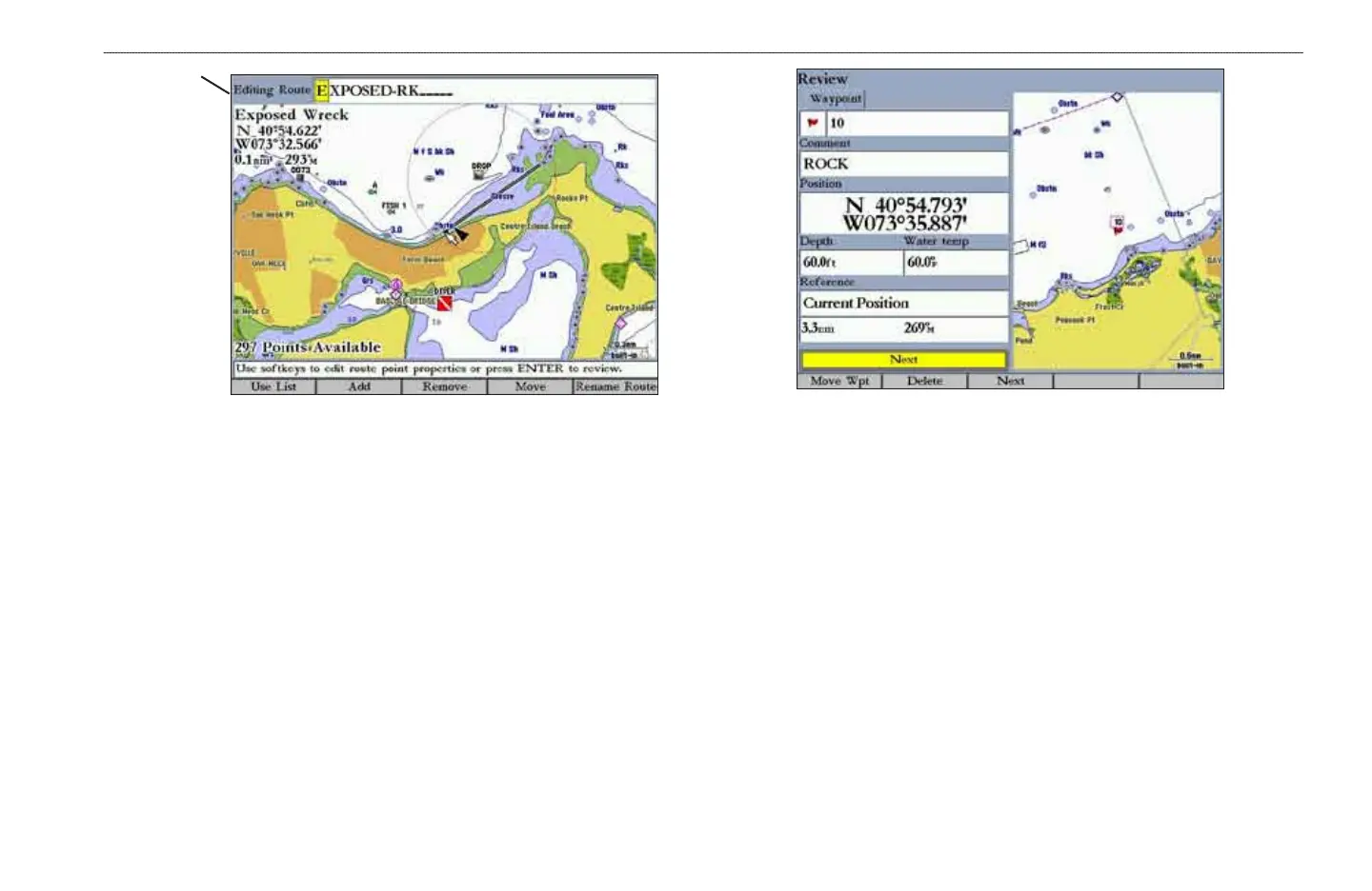 3. Press the Rmv From Rt soft key to remove the point from the route, press