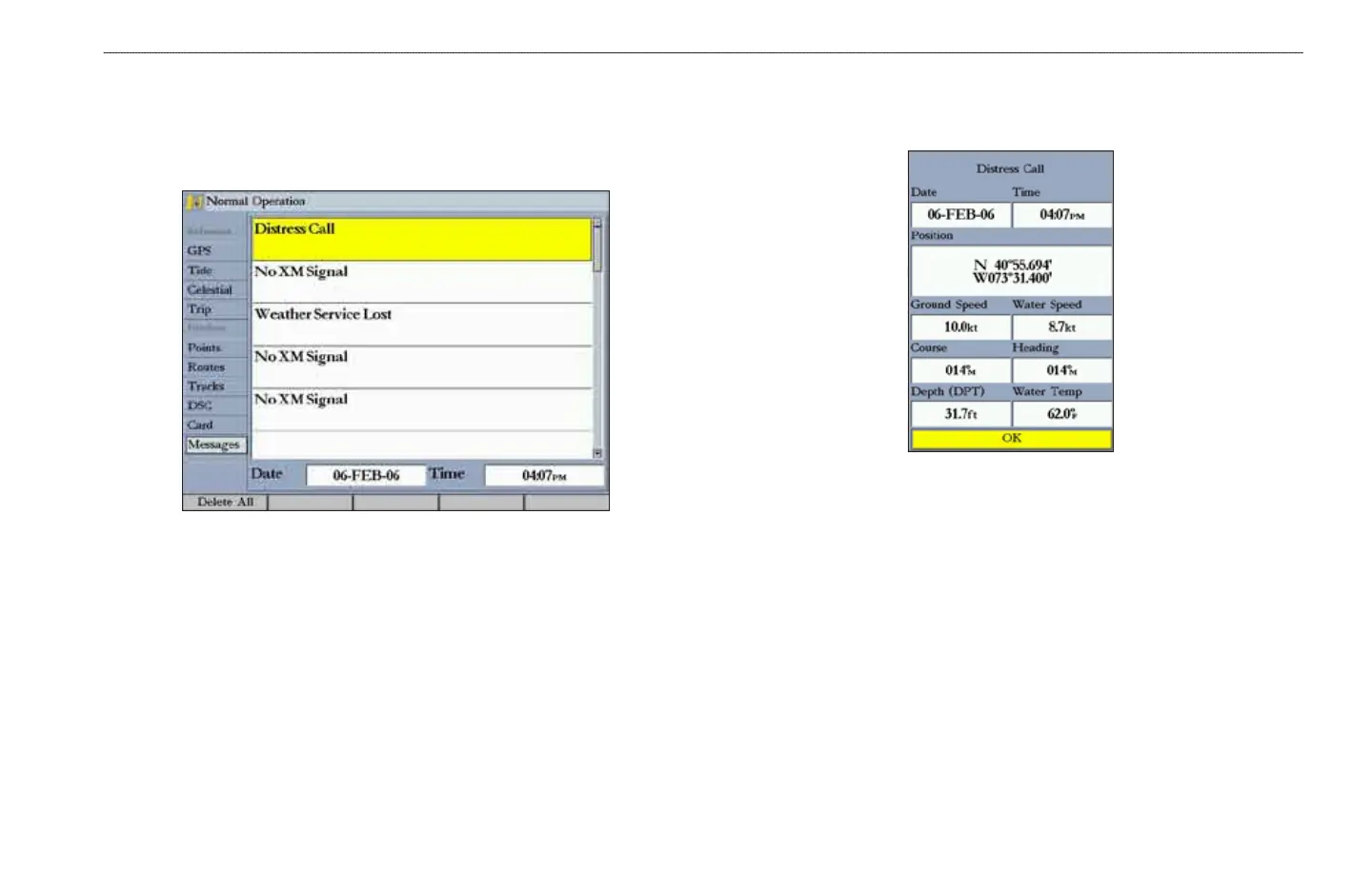 MaIn Menu > Messages tab