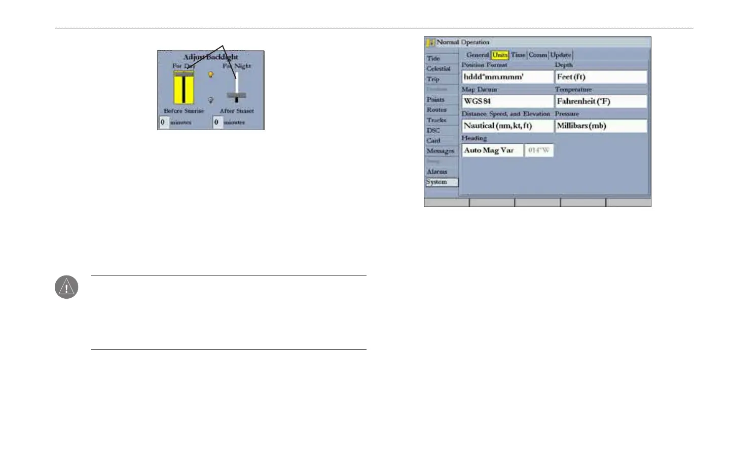 WARNING: The Units sub tab settings affect how navigation information