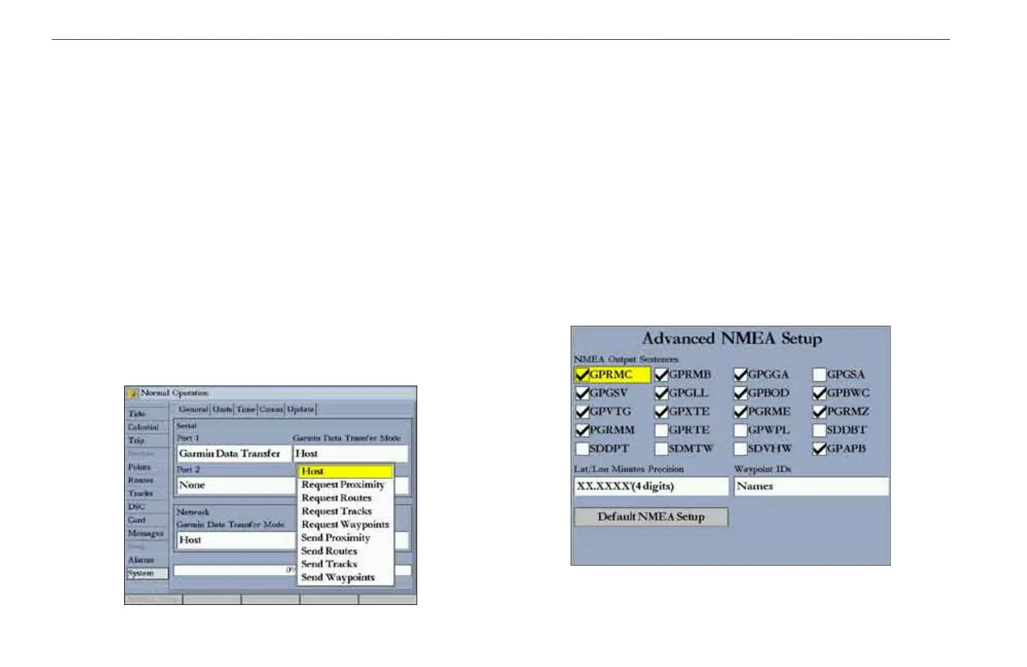 Waypoint/Route (WPL, RTE), and the Garmin proprietary sentences on or off.