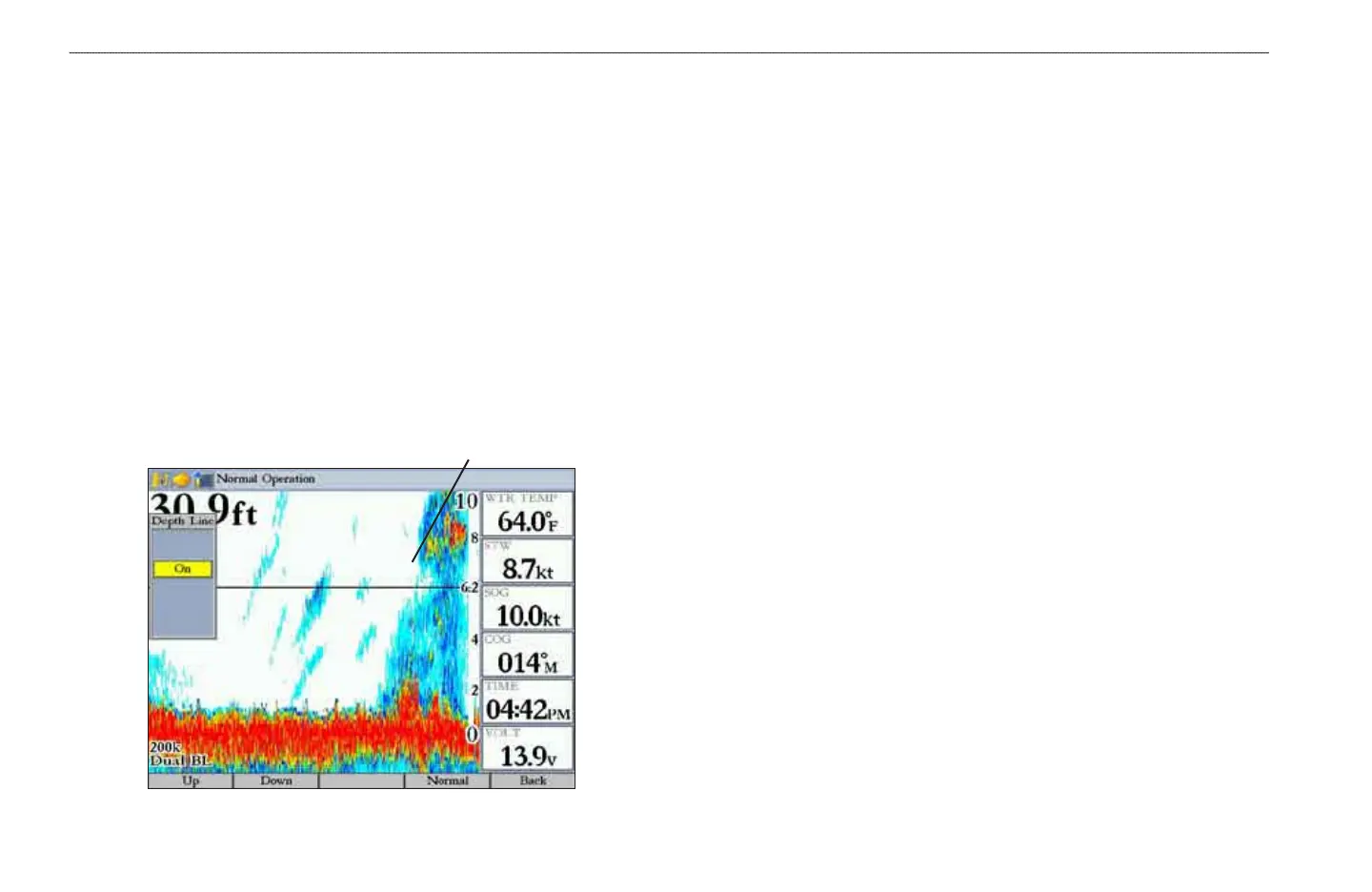 position of the line on the Sonar Page. To turn the Depth Line off, press the