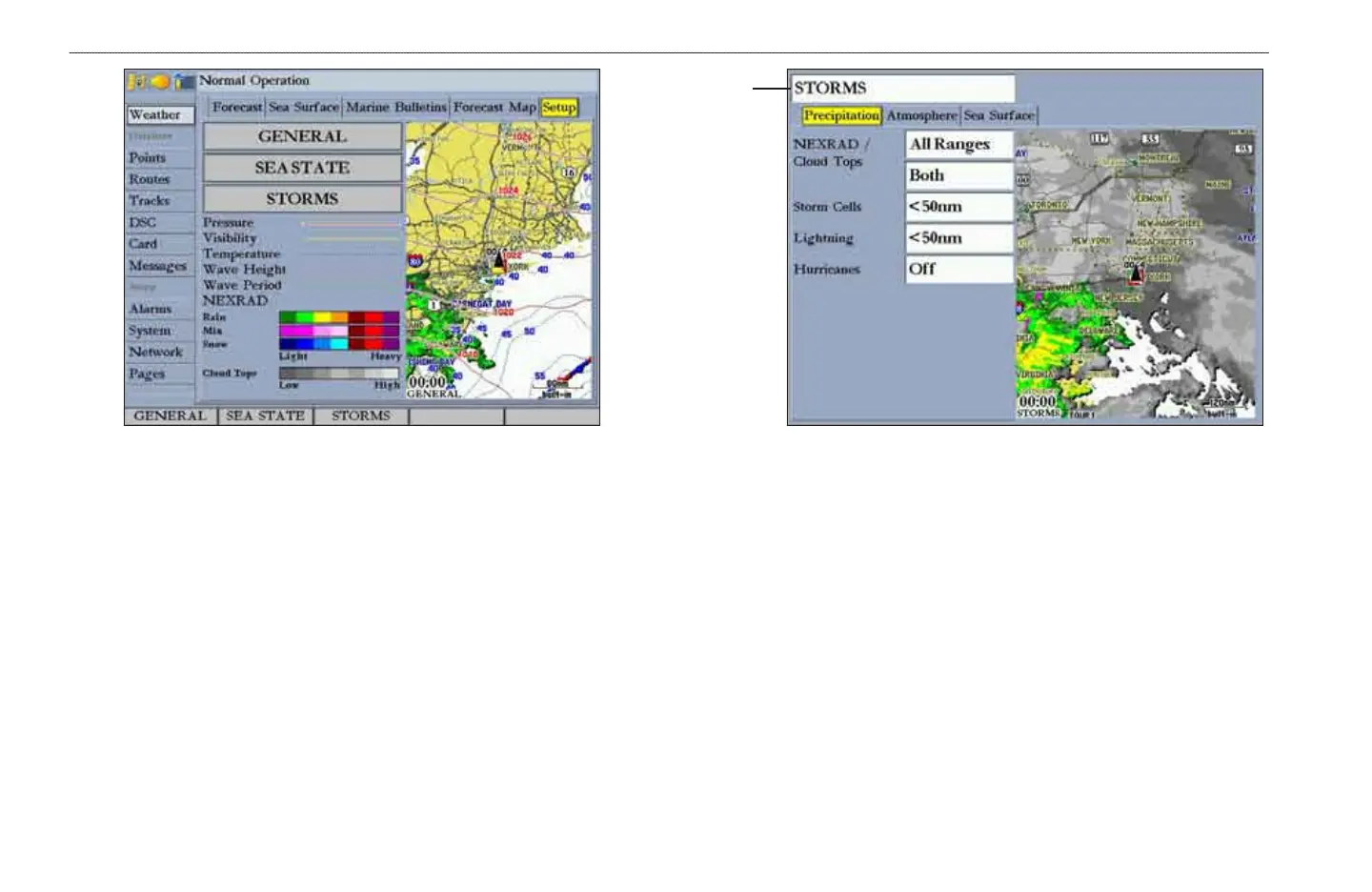 To access weather setup options from the Map Page: