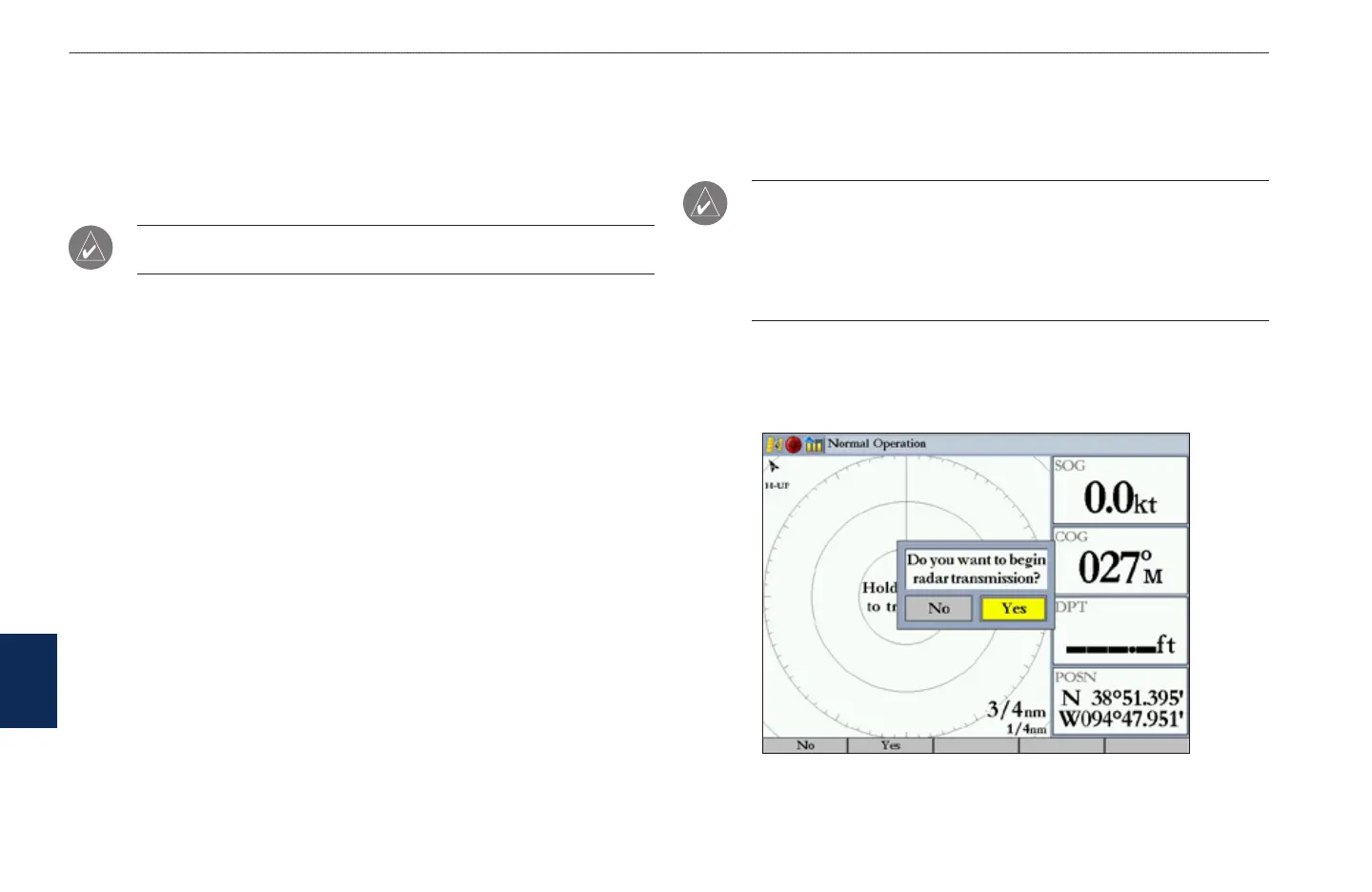message “Do you want to begin radar transmission?” is shown. Select Yes, and