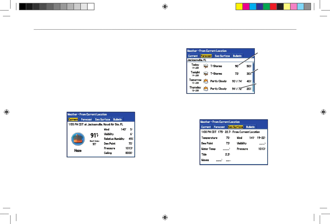 conditions, forecast information, sea surface conditions, and weather