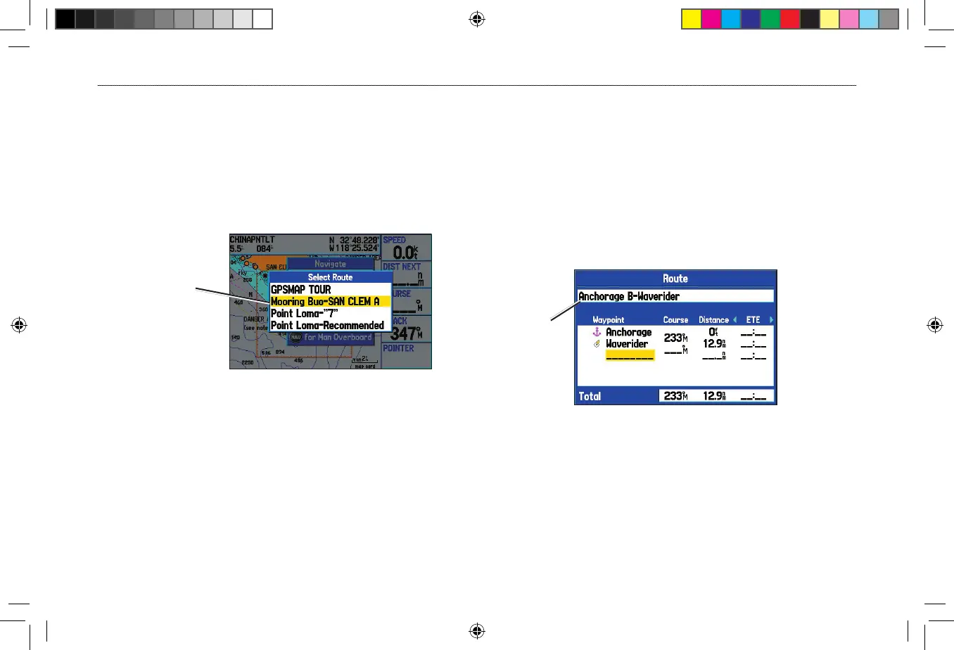 2. Highlight Navigate Route, and press ENTER.