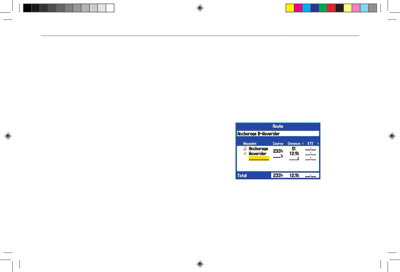 1. Highlight the Route tab on the Main Menu.