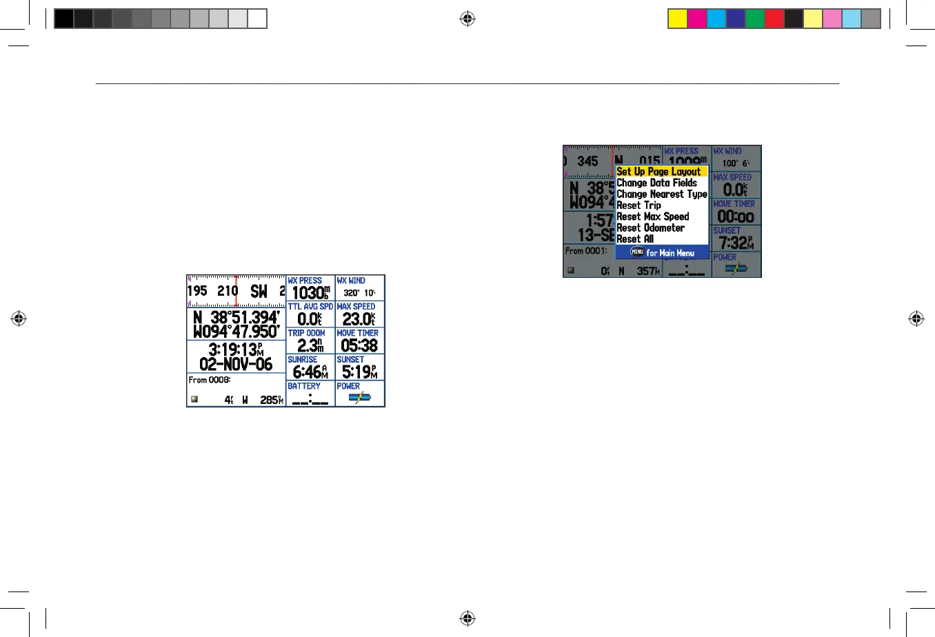 landmark such as a waypoint or city, and eight user-selectable data