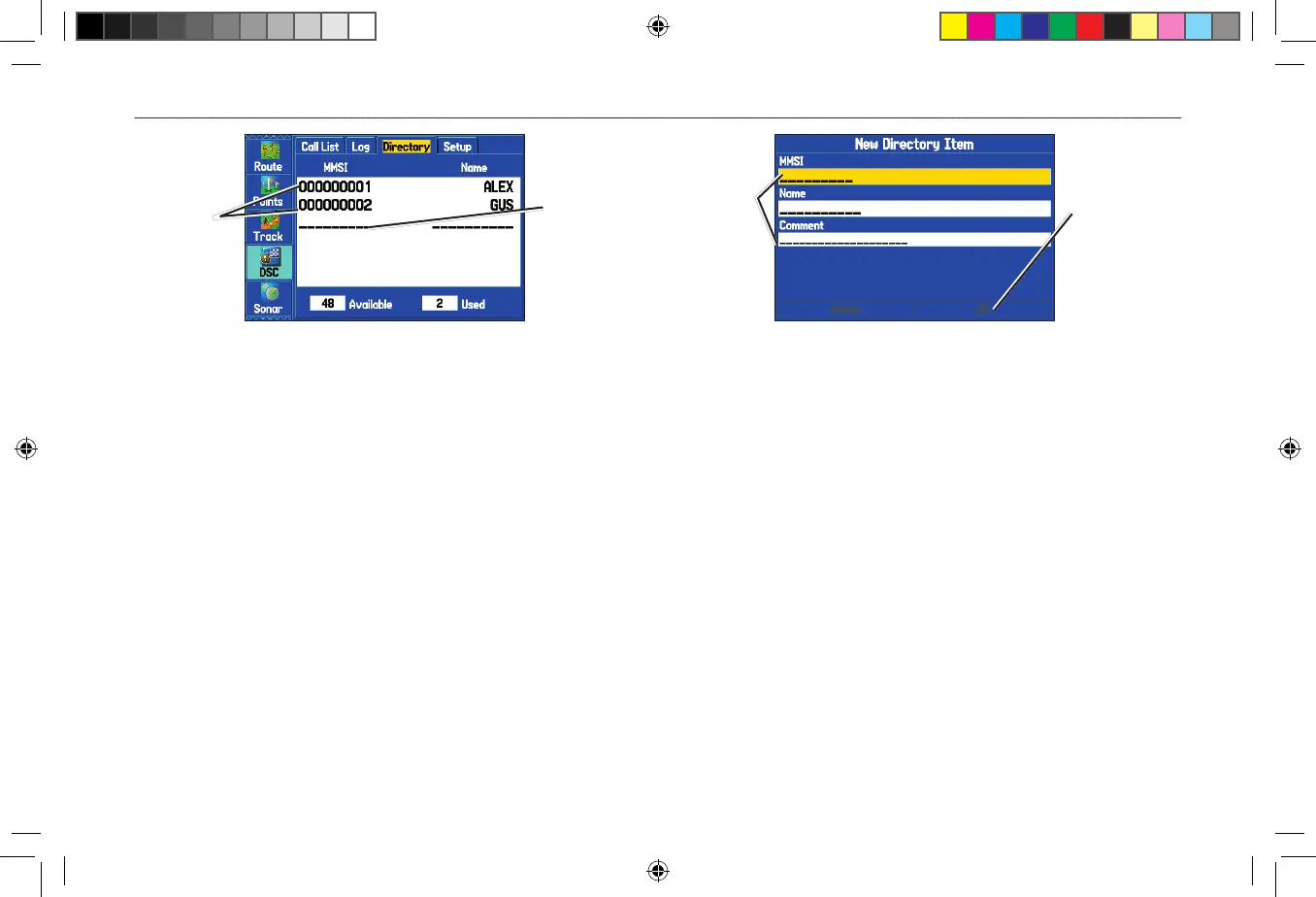 DSC Distress Call or DSC Position Report Pages. The Name and