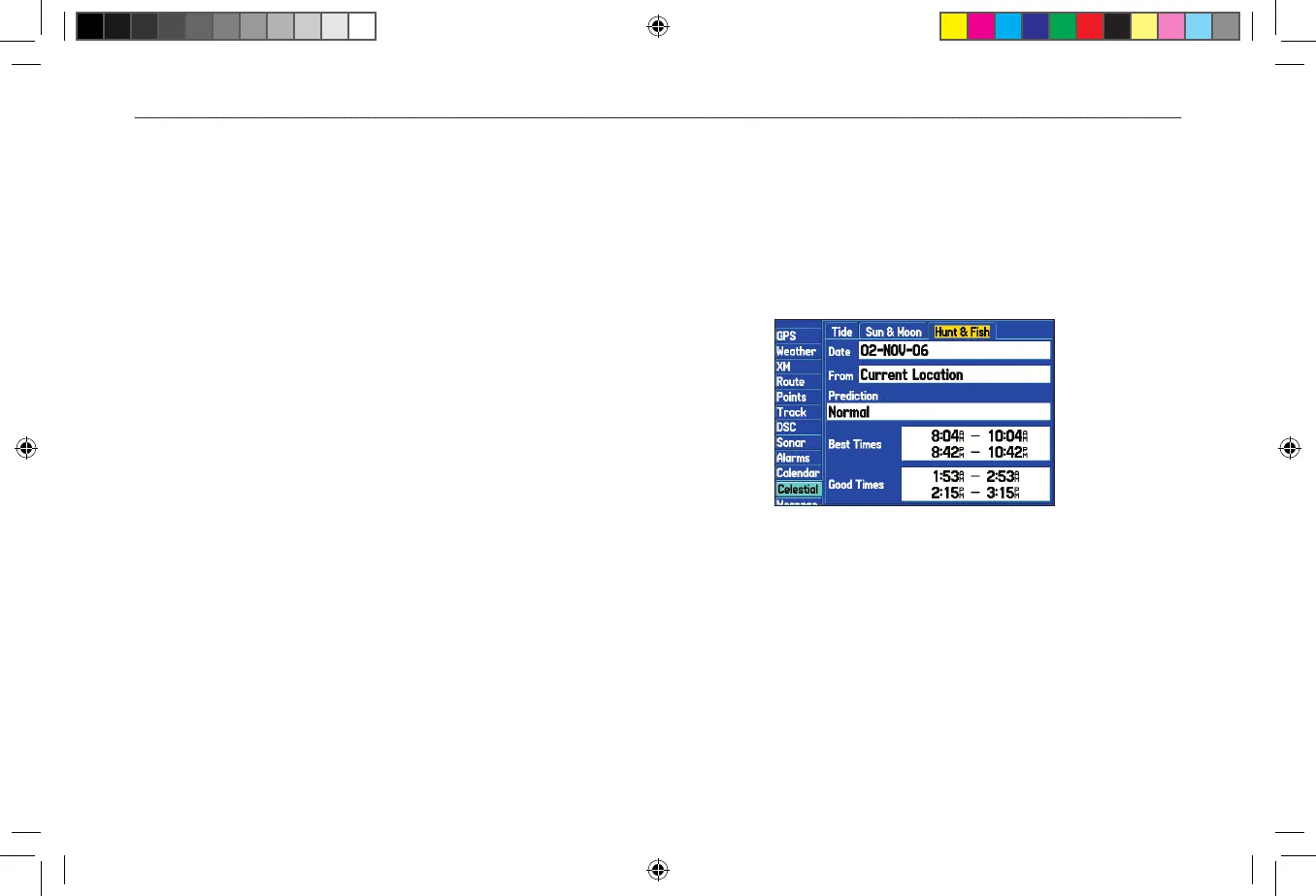 times to hunt and fish in a selected location on a specific date.