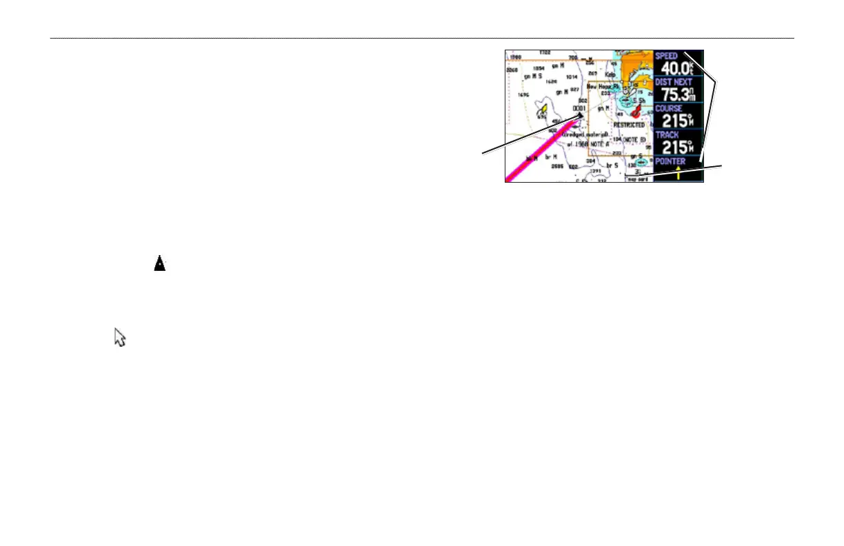 GPSMAP 396 enters pan mode, which moves the map to keep the