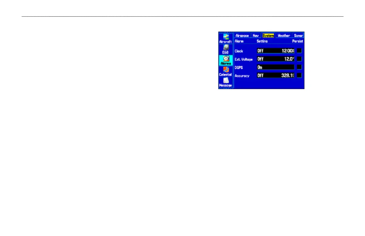 —sets an alarm to sound when the unit loses a differential x.