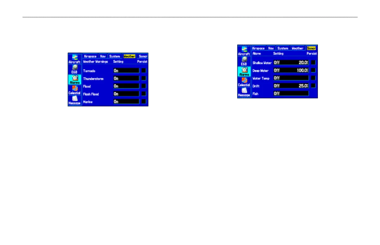 Sonar Alarms Sub Tab (Marine Mode Only)