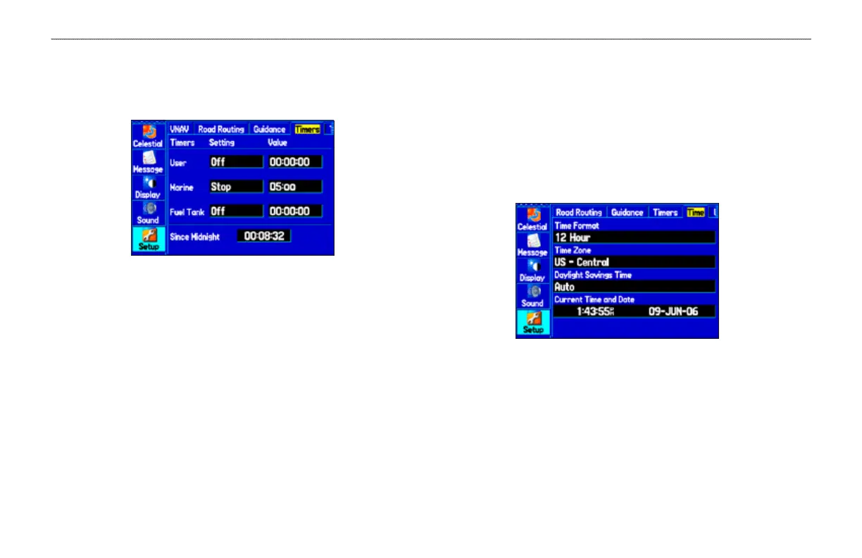 To open the Timers sub tab, press MENU twice, select Setup from