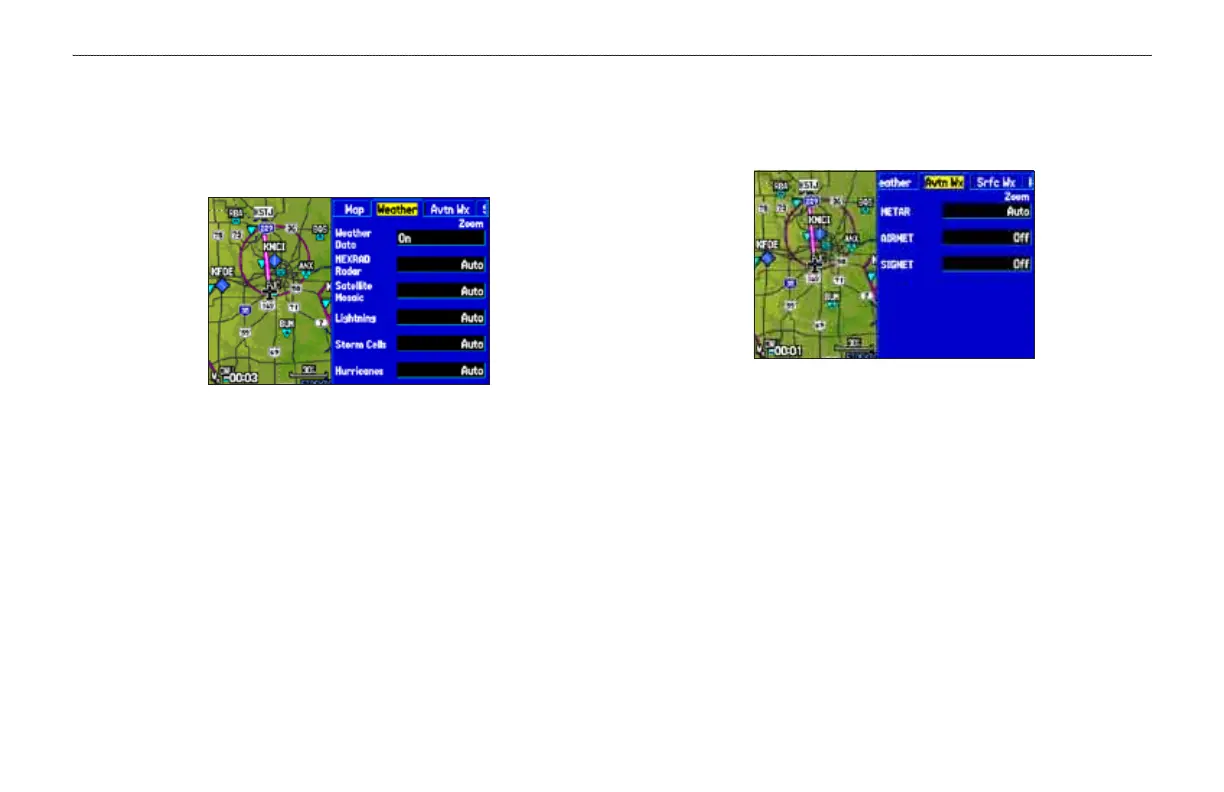 Use the Avtn Wx tab to set the zoom range at which aviation