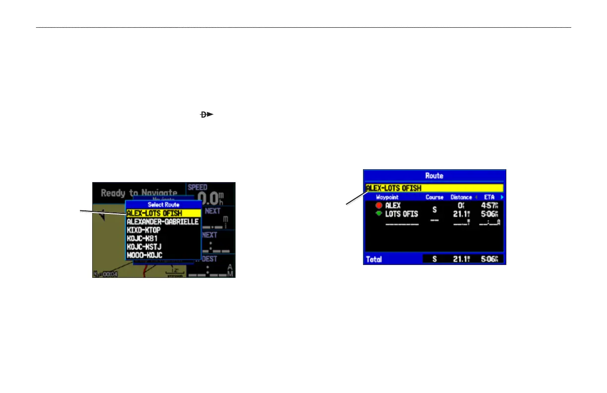 3. Highlight a route, and press ENTER. The Active Route Page